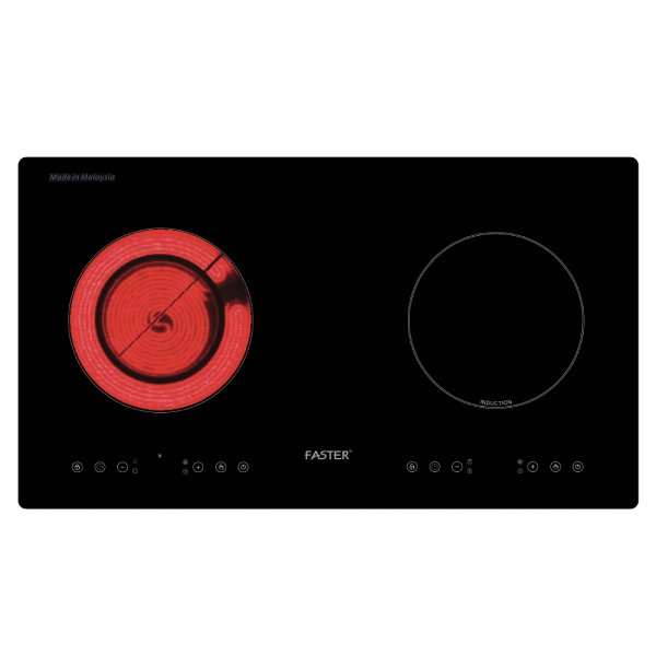 Bếp từ Malaysia FS 628 HI sử dụng mặt kính Vitro Ceramic với ưu điểm sáng bóng, chịu lực, chịu nhiệt và có độ chống trầy xước cao, giúp tăng độ bền và thẩm mỹ cho bếp cũng như dễ dàng vệ sinh. Bếp có 2 vùng nấu điện và từ, không kén nồi nên rất tiện dụng.