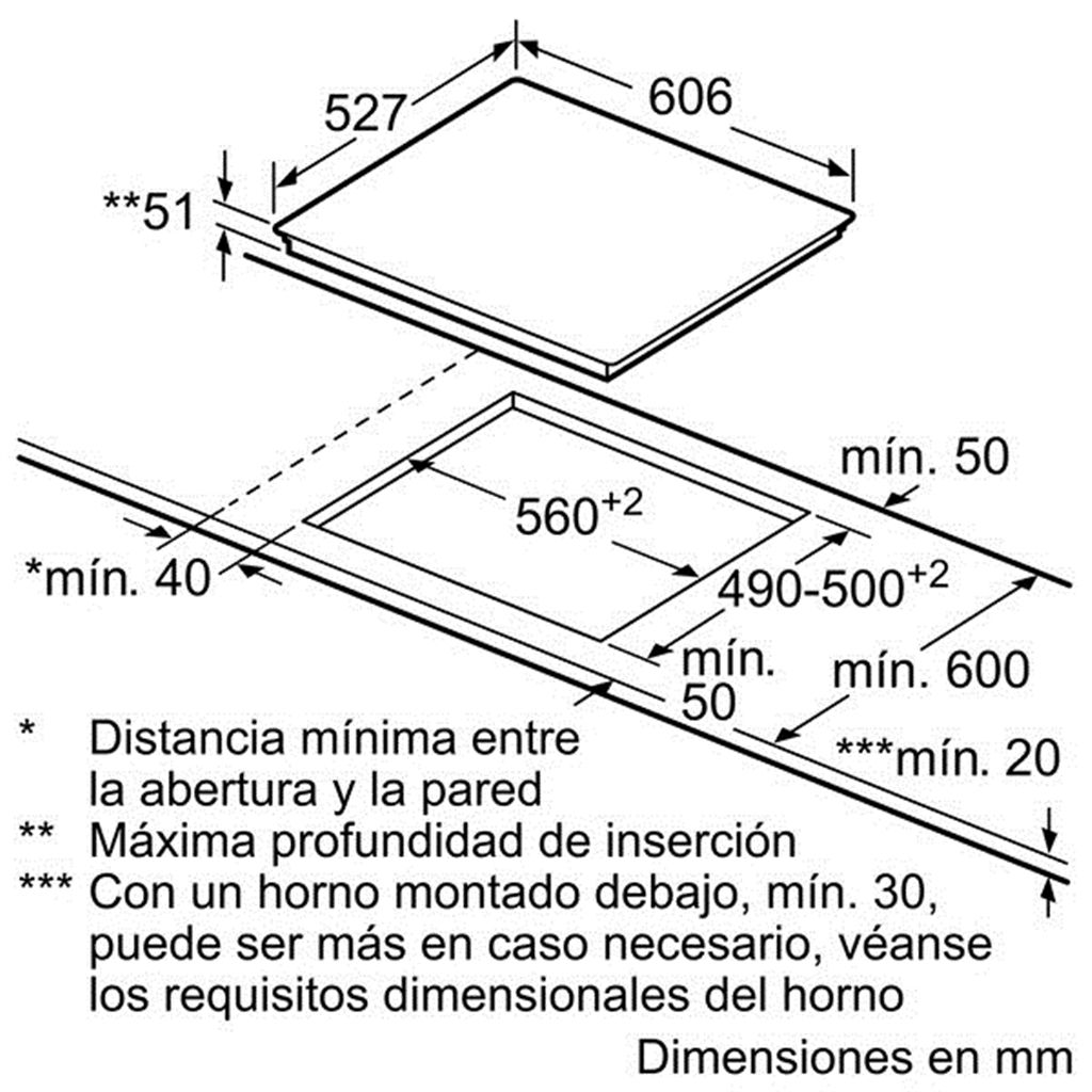 Kích thước khoét đá (CxRxS) | 51 x 560 x 490-500 mm |