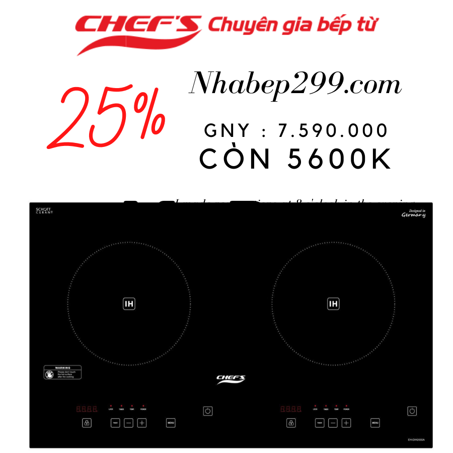 Bếp từ Chefs EH-DIH2000A với linh kiện của Đức lắp ráp tại Việt Nam , được kiểm định hàng chất lượng cao trước khi đến tay người tiêu dùng . Bếp được thiết kế đặt cả âm và dương phù hợp với mọi gia đình