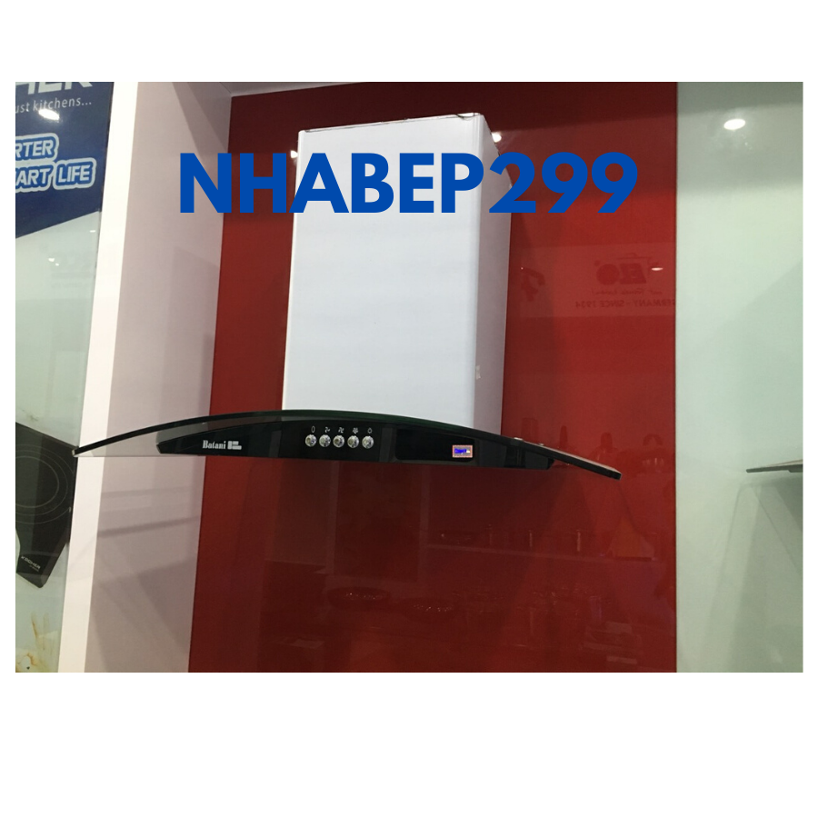 Máy hút mùi kính cong Batani BA B8 kiểu dáng kính cong, mặt kính màu đen