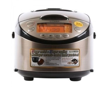 Nhằm đáp ứng nhu cầu nấu cơm thơm ngon, nhanh chóng, dễ dàng, an toàn và tiện lợi để phục vụ những bữa cơm đa dạng cho người nội trợ cũng như giữ được hương vị và độ ngọt của hạt cơm thì Thương Hiệu Tiger đến từ Nhật Bản chuyên sản xuất các sản phẩm nhà bếp, gia dụng nói chung đã cho ra đời những mẫu nồi cơm điện tử cao tần hiệu Tiger cao cấp cùng với công nghệ nấu “Tacook” mới nhất cho thị trường Việt Nam dựa trên nguyên tắc cân bằng nhiệt, hơi nước và thời gian nấu. Nồi cơm điện tử cao tần Tiger JKT-S10W 4 trong 1 dung tích 1.0 lít được sản xuất từ linh kiện cao cấp có độ bền cao và nhựa không chứa chất độc hại, thiết kế nhỏ gọn, nhiều màu sắc trẻ trung, sang trọng, hiện đại và an toàn luôn luôn có mặt trong mọi không gian nhà bếp.