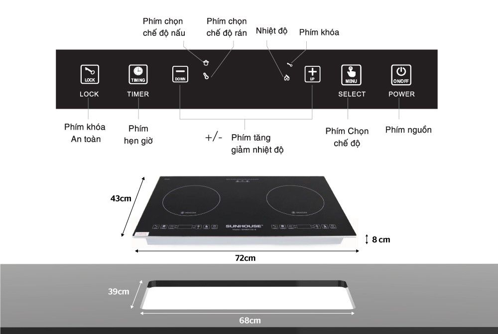 Với những tính năng tiện lợi như trên,chiếc Bếp từ đôi Sunhouse SHB9108-S thật sự là một sự lựa chọn tốt,thiết kế hiện đại,an toàn,đa chức năng nấu nướng.